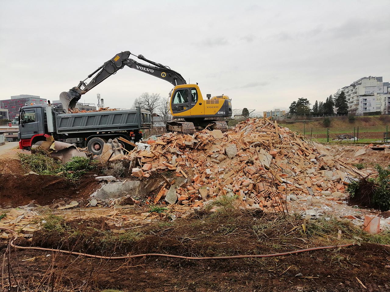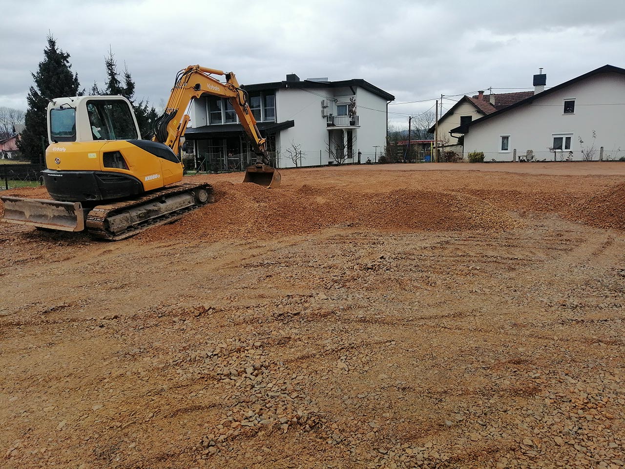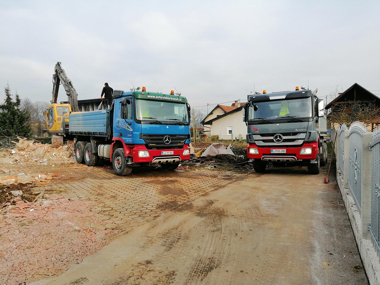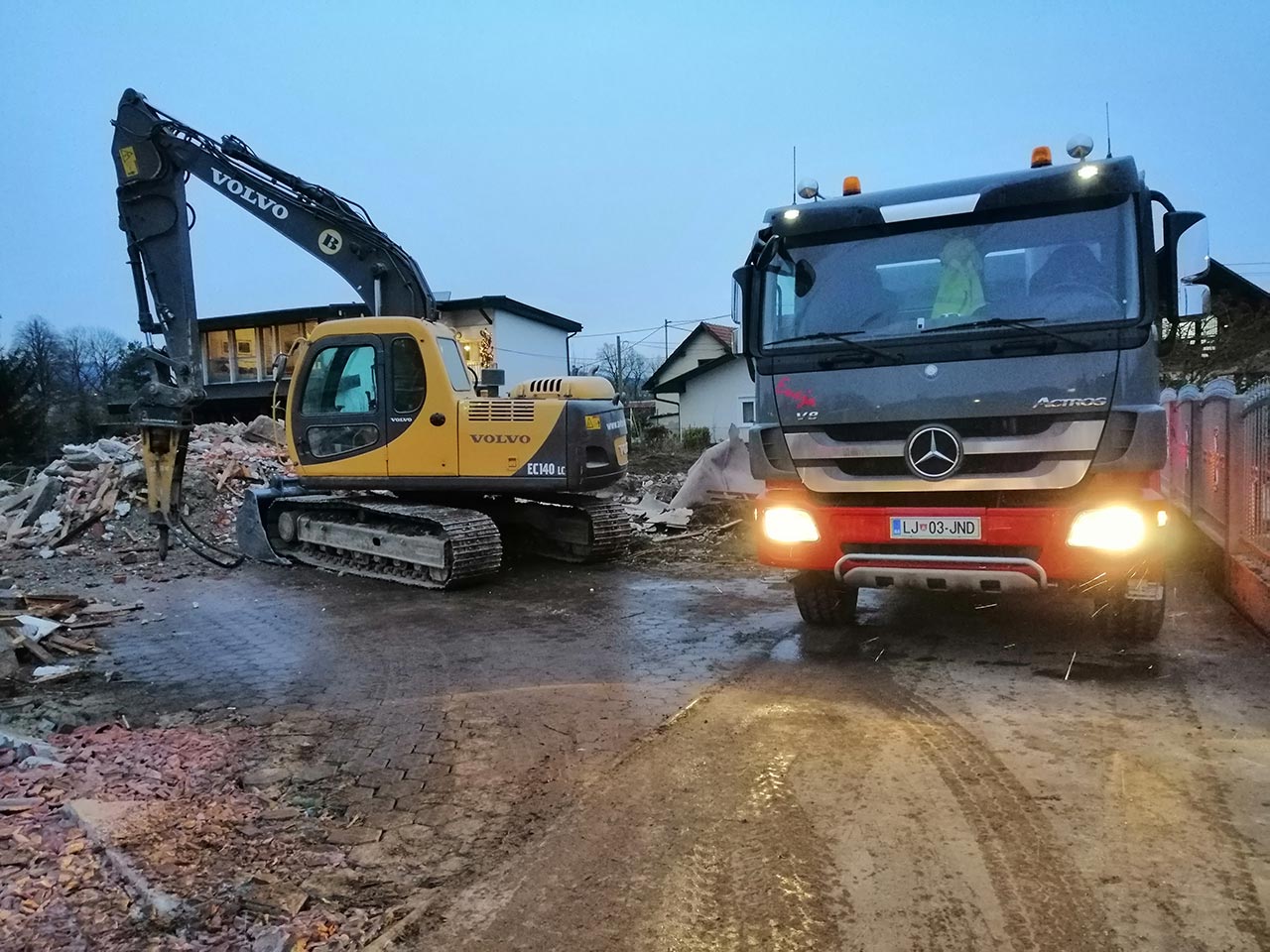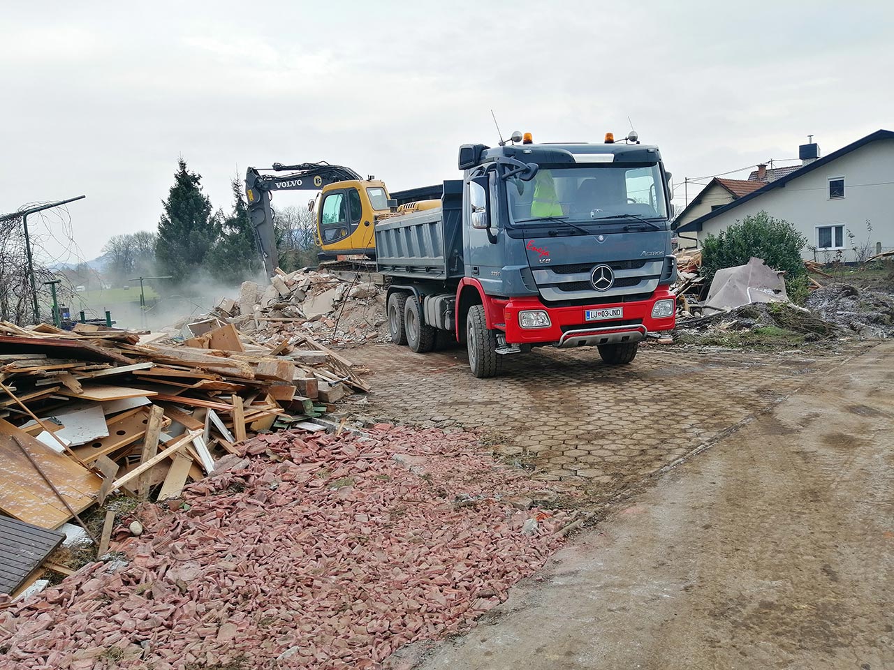 Rušenje stanovanjske hiše, izkop zemljine oz.nenosilnega materiala in izdelava tamponskega nasutja za gradnjo dveh samostojnih hiš.