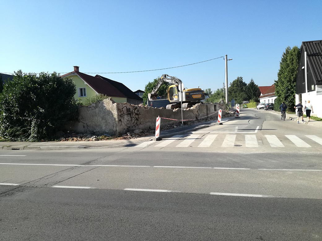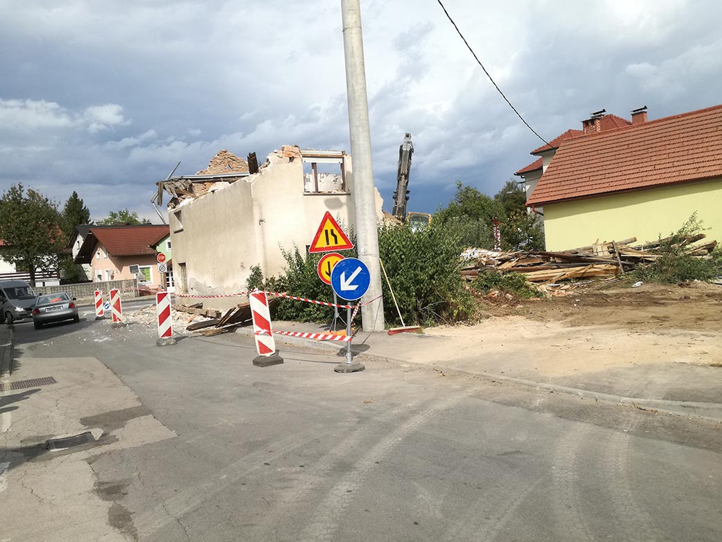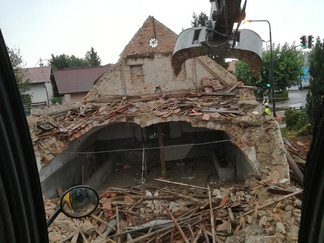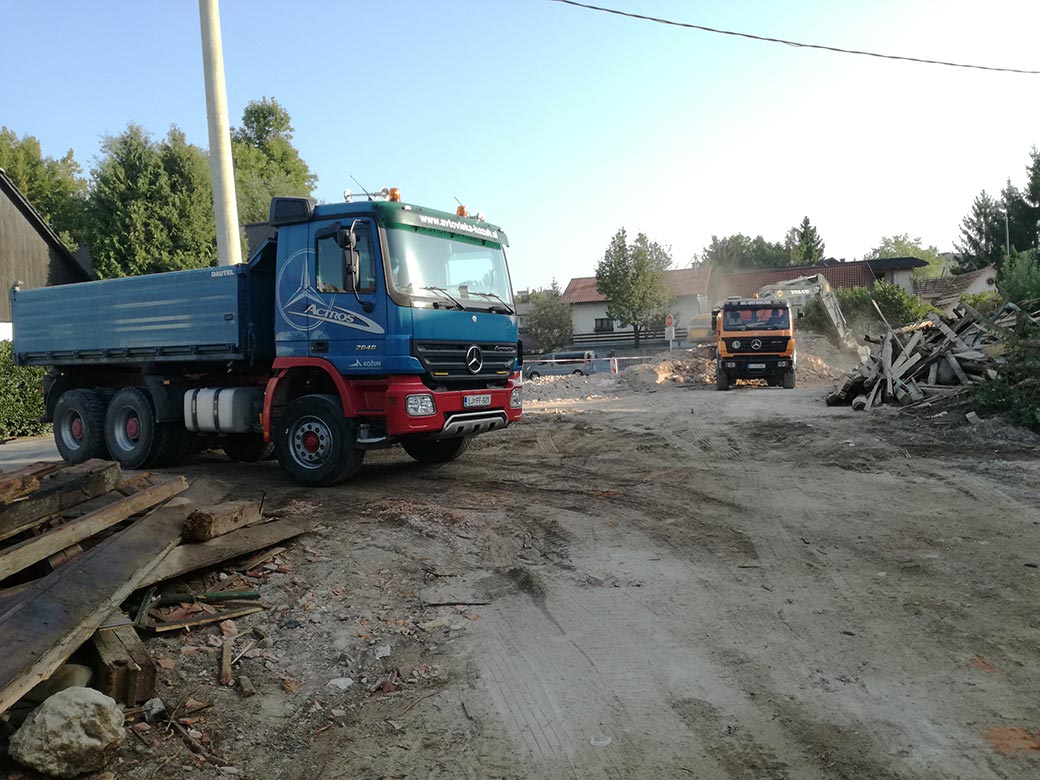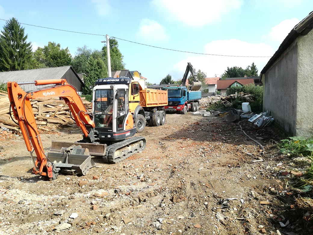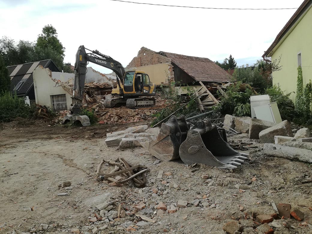 Rušenje stare hiše in hleva.